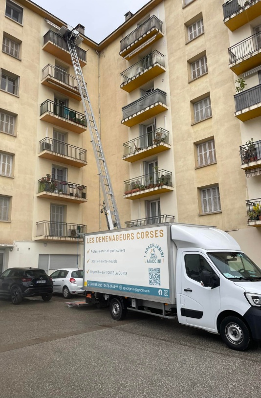 Notre service de location de monte meuble à Ajaccio est idéal pour les logements en étage élevé, les immeubles sans ascenseur ou les accès difficiles. Grâce à nos équipements modernes et régulièrement entretenus, nous facilitons la manutention des charges lourdes ou encombrantes en toute sécurité. I Spachjarini Aiaccini, entreprise de transport de mobilier, propose également plusieurs options de location de camion avec chauffeur pour s’adapter à chaque situation : déménagement, rénovation, déplacement ponctuel de mobilier…